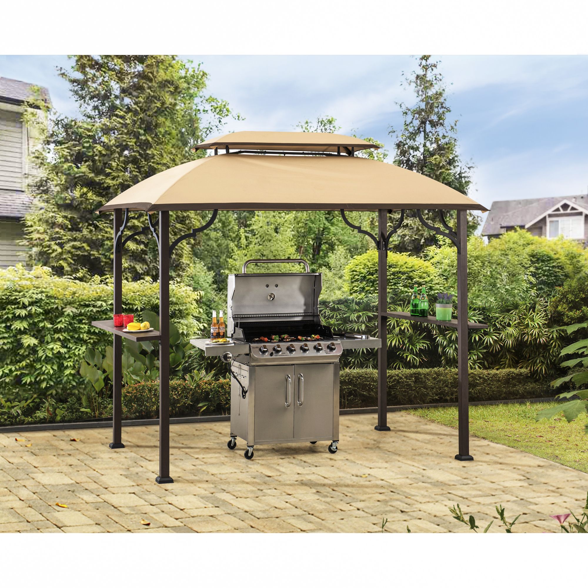 Cobana grill gazebo 8 by 5 outdoor patio backyard bbq grill shelter double tiered soft canopy top with steel frame and bar counters gray 4 5 out of 5 stars 123 169 99.